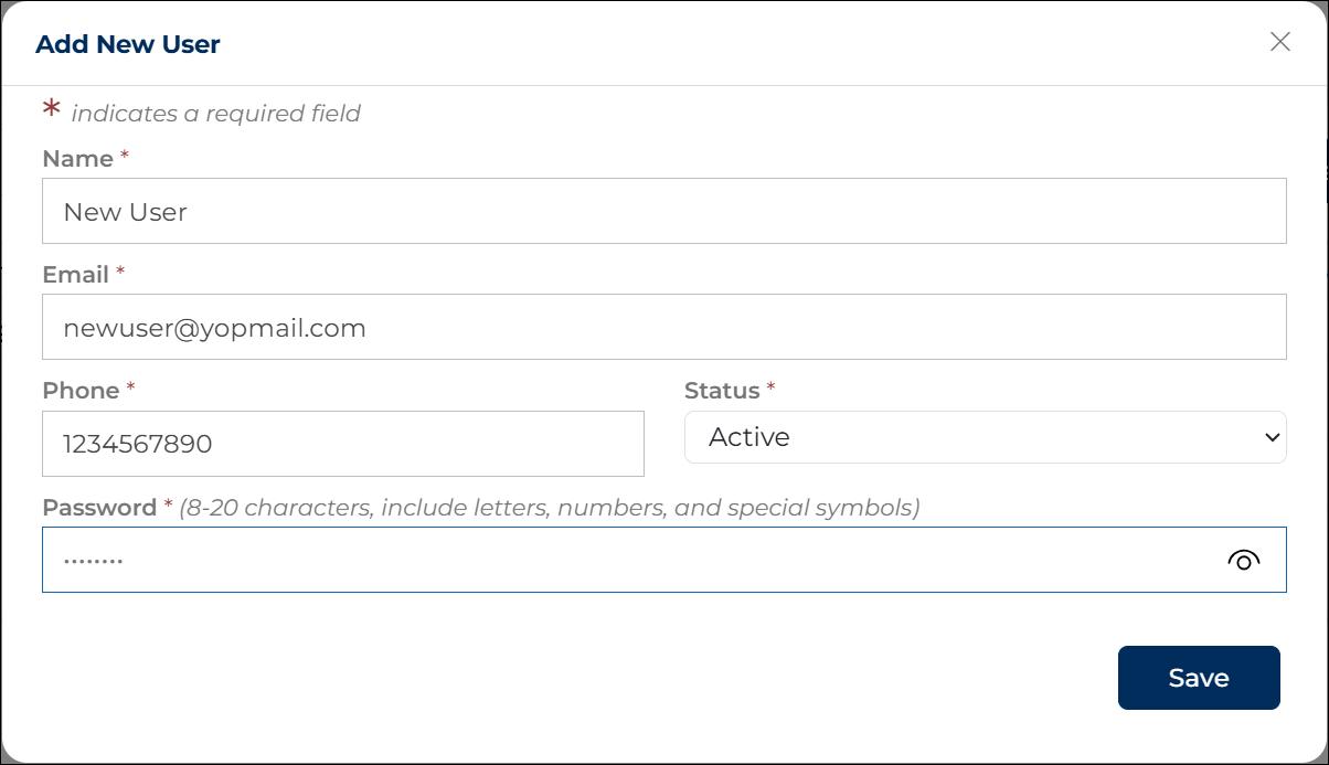 Add New User Popup