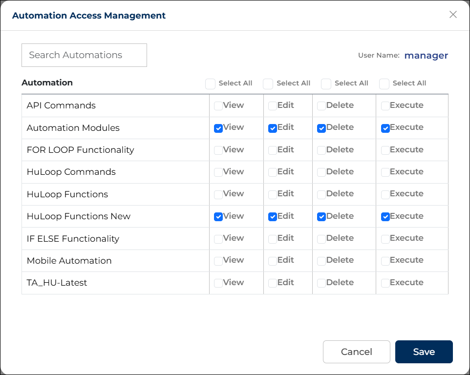 You can use the Select All option to assign a specific permission across all automations at once.