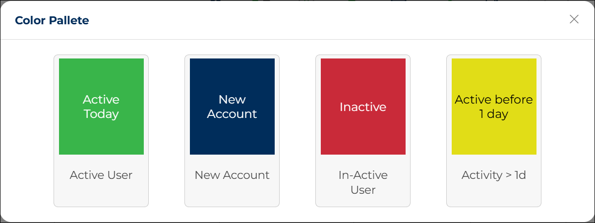 • Color Legend Button: Helps you understand user activity status based on color indicators.