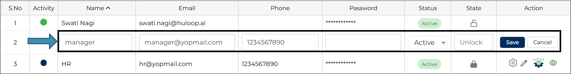 • Status (Active/Inactive)