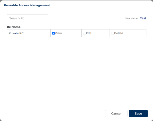 2. In the Reusable Access Management pop-up, you will see: