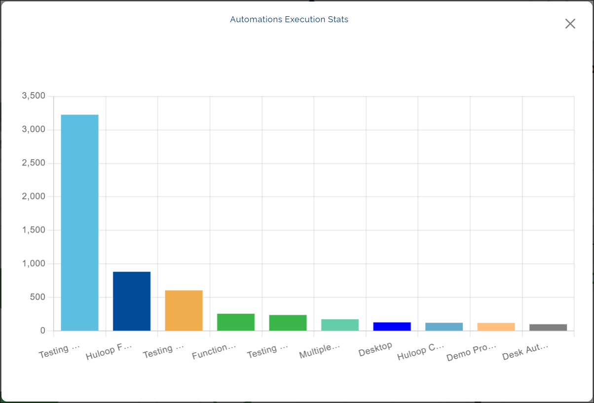 • The Automation Execution Stats chart displays how many times each automation has been executed within a selected date range.