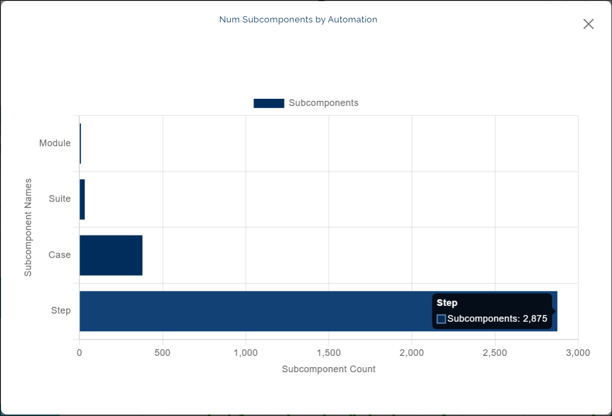 • It displays a horizontal bar for each subcomponent type: Module, Suite, Case, and Step.