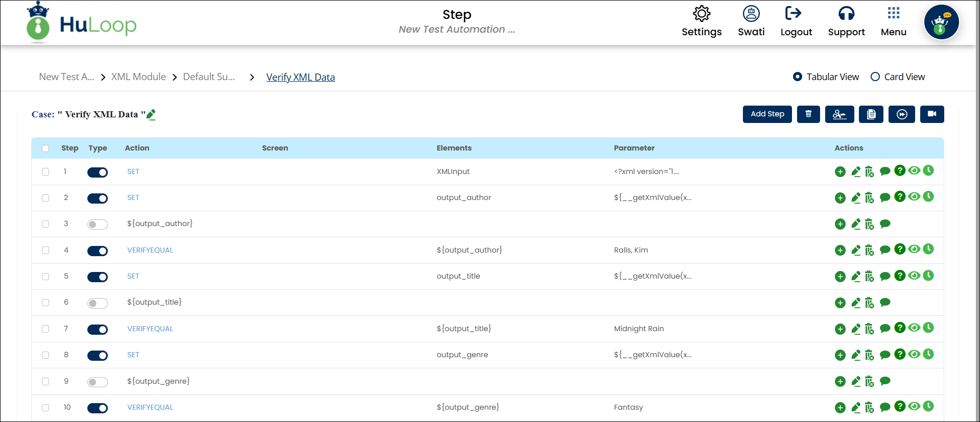 Each SET (Set a Variable Value) command retrieves a specific XML value and stores it in a corresponding variable (e.g., output_author, output_title, output_genre). These extracted values are then validated using VERIFYEQUAL (Verify Equality Of Two Values) command to ensure correctness.