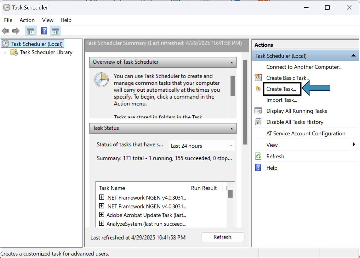 - Open Task Scheduler from the Start menu.