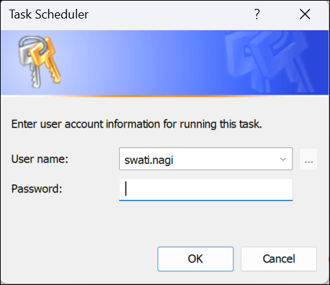 - Click OK. You may be prompted to enter your system credentials to run the task.
