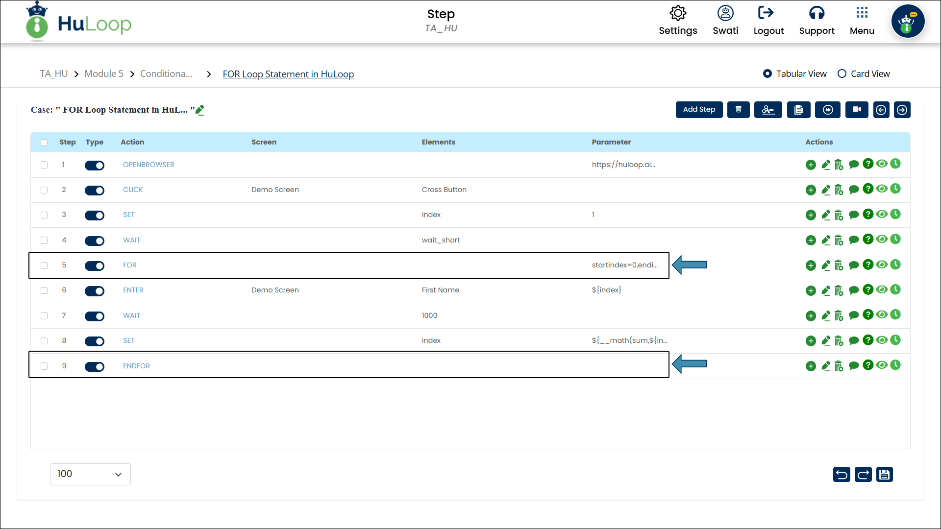 • If index = 5, the automation skips the remaining steps in that iteration and proceeds with the next loop cycle.