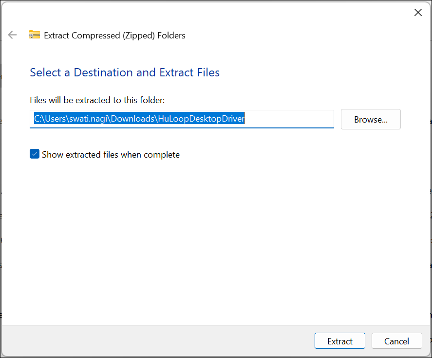 The Desktop Driver will be downloaded as a Zip file (e.g., HuLoopDesktopDriver.zip).