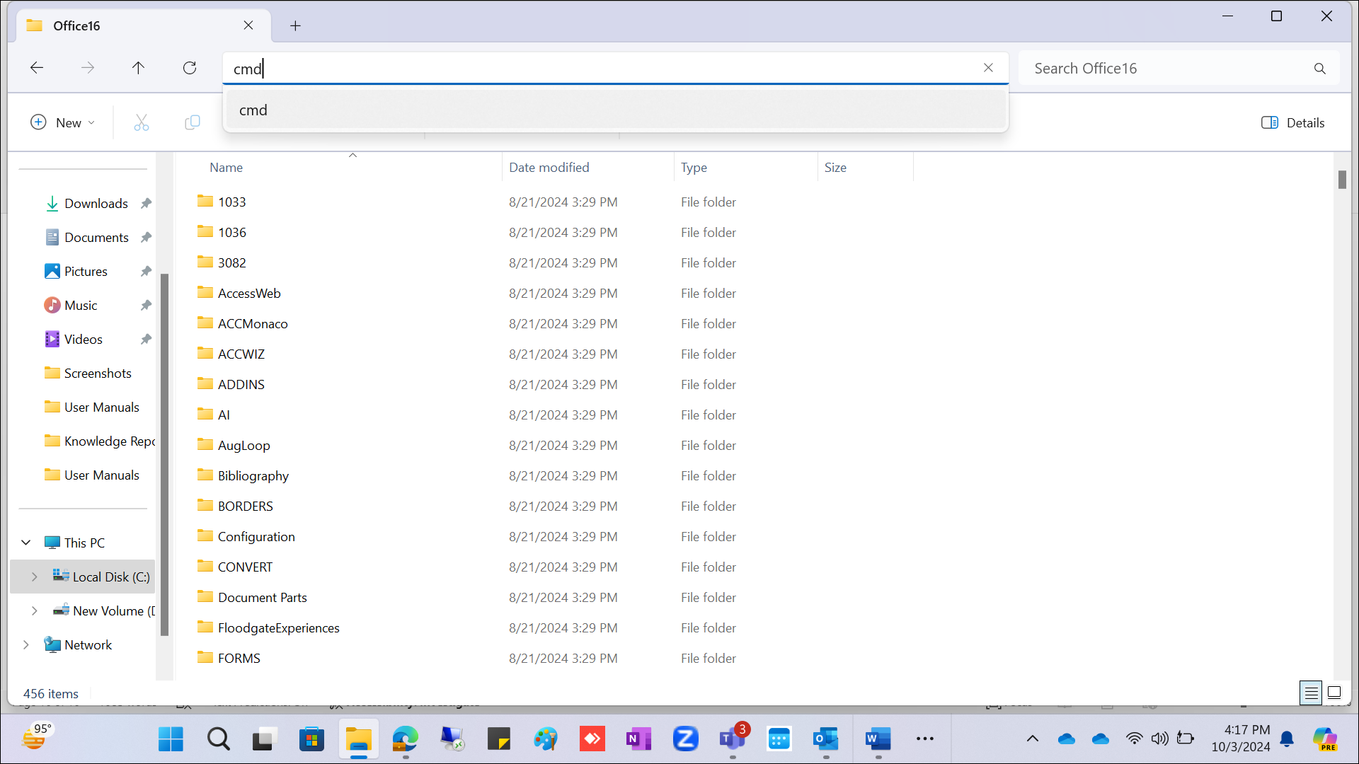 “C:Program FilesMicrosoft OfficerootOffice16”
