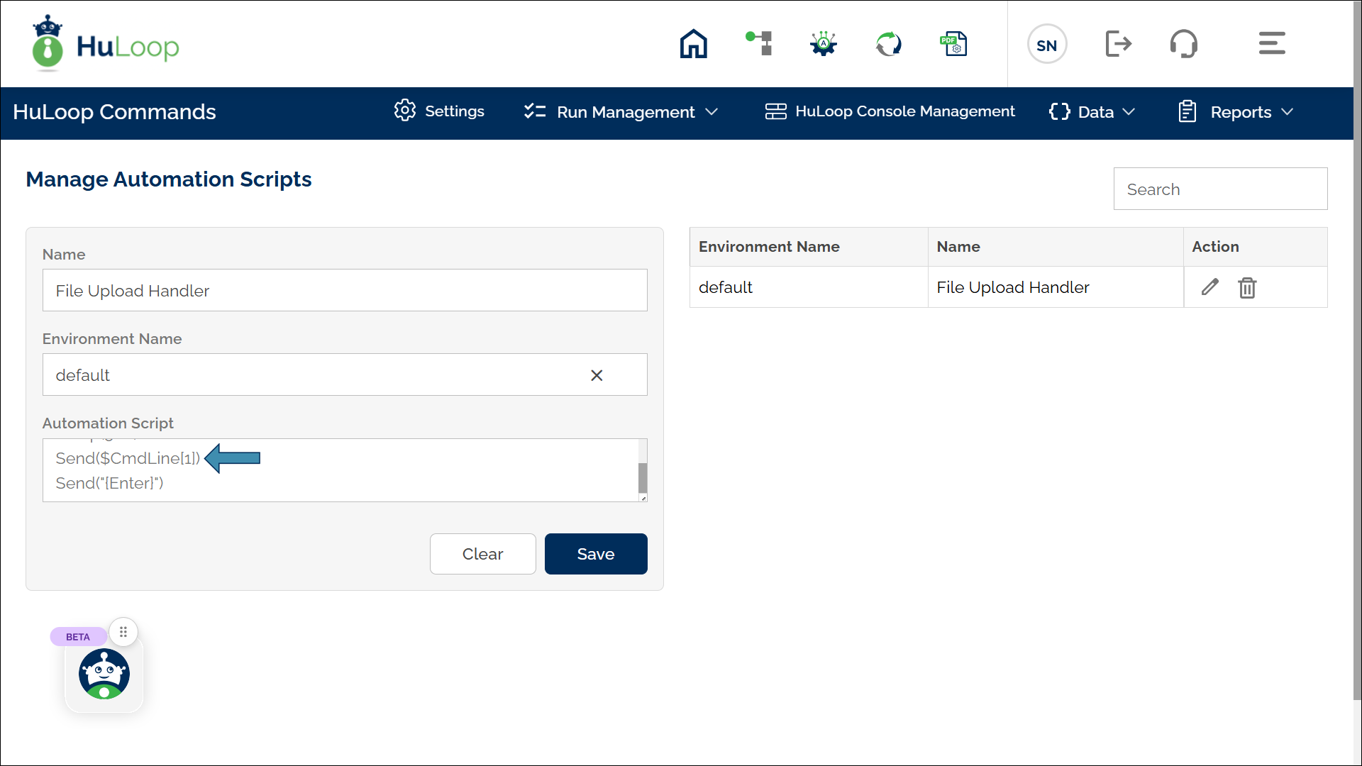 - All scripts defined in Manage Automation Scripts will appear here. Select the appropriate script (e.g., File Upload Handler).