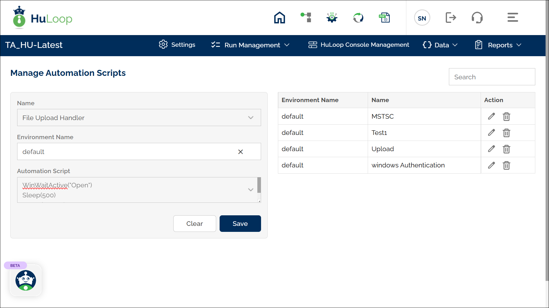 - Provide a name for the script, keep the Environment Name as default, and enter Autoit script in the Automation Script text area.