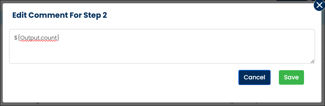 • The count is stored in the variable count, which can be referenced in later steps of your automation process using the syntax ${VariableName} (e.g., ${count}).