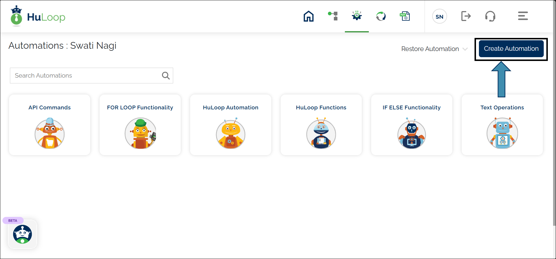 - You will land on the following page where you can find all your existing Automations. Click Create Automation.