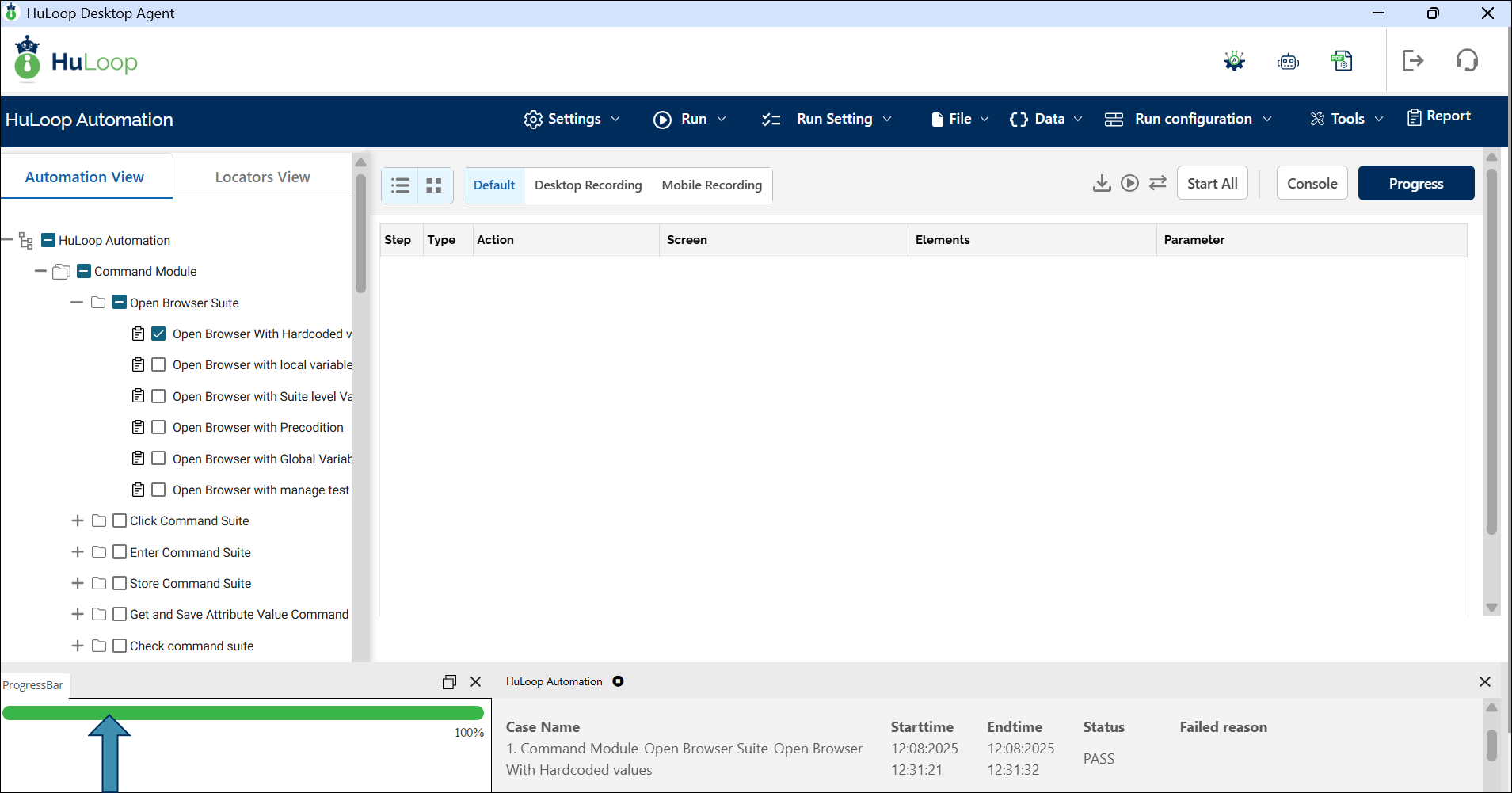 - This will start the case execution. You can track the progress of the execution via the progress bar at the bottom of the screen: