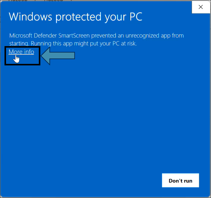 - Open the folder and double click HuLoopAgent.exe file. You will get the following pop-up. Click More Info, as shown: