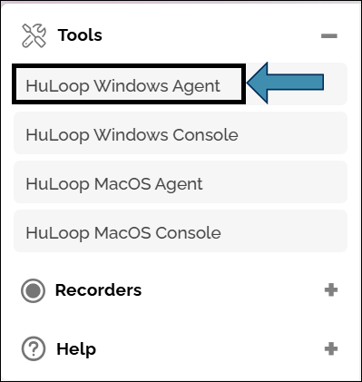 - Expand the Tools option and select the HuLoop Windows Agent: