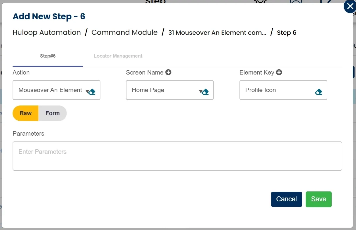 The Mouseover An Element action is used to move the mouse pointer over an element such as a link, button, or any interactive element without clicking it. This action is helpful when triggering hover actions, such as displaying tooltips or activating dropdown menus.