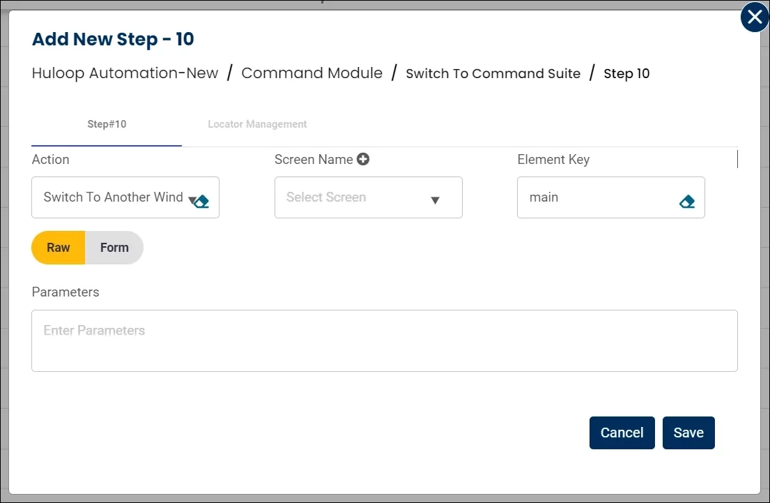 - In the Element Key field, specify the text as main to switch back to the main window and close all child windows.