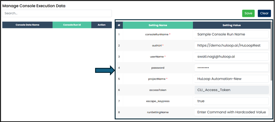 HuLoop CLI supports authentication using an access token. This method is more secure and flexible than entering a password. When generating Console Execution Data, you can use an access token instead of filling in the password field.