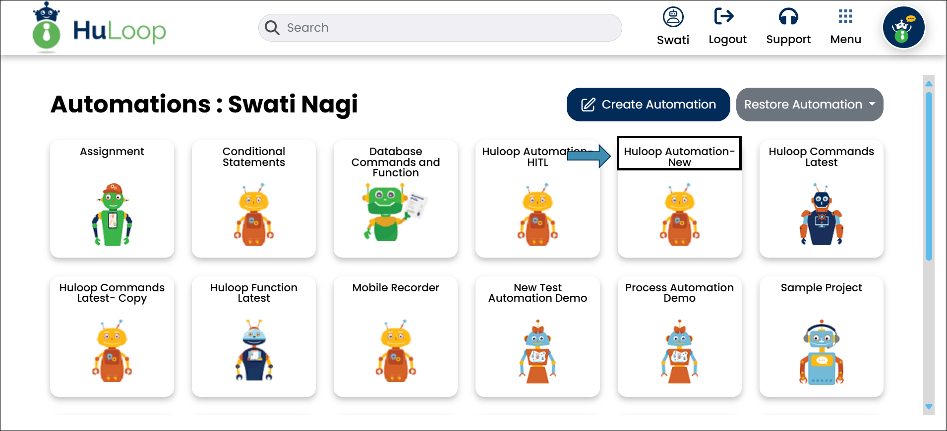 - You will be redirected to the HuLoop homepage. Select Automation.