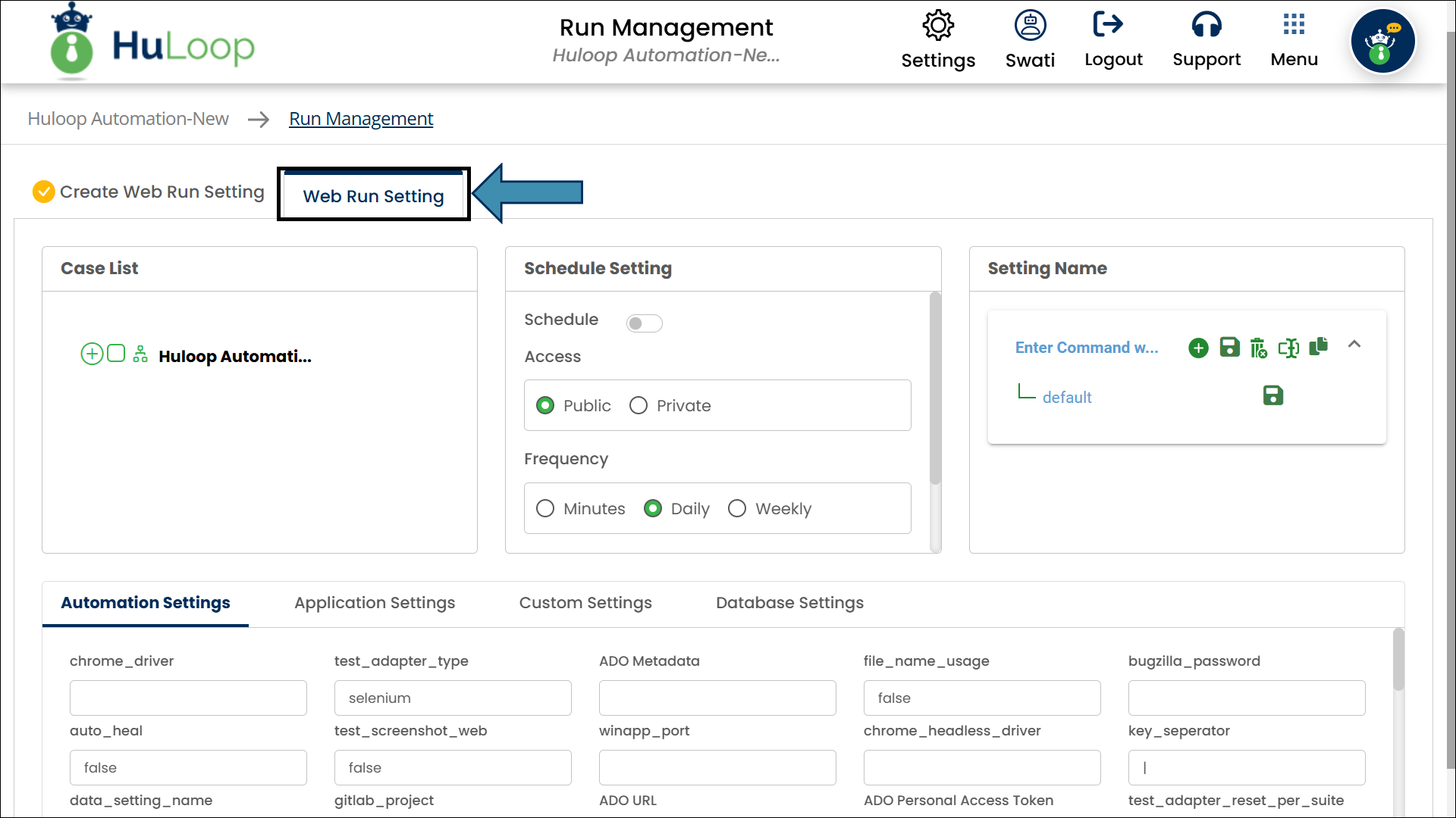 A Run Setting defines what part of your automation project should be executed. Whether you want to run the entire project or just a few cases like regression cases, smoke cases etc. You need to create a Run Setting to capture that selection. To do create a Run Setting: