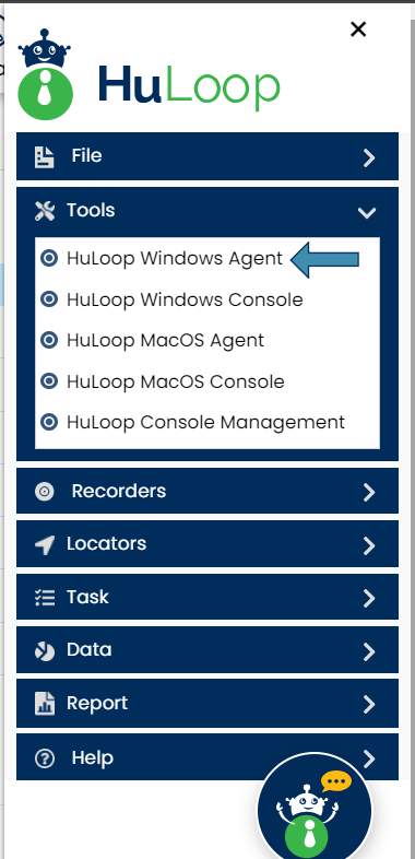 - Expand the Tools option and select the HuLoop Windows Agent:
