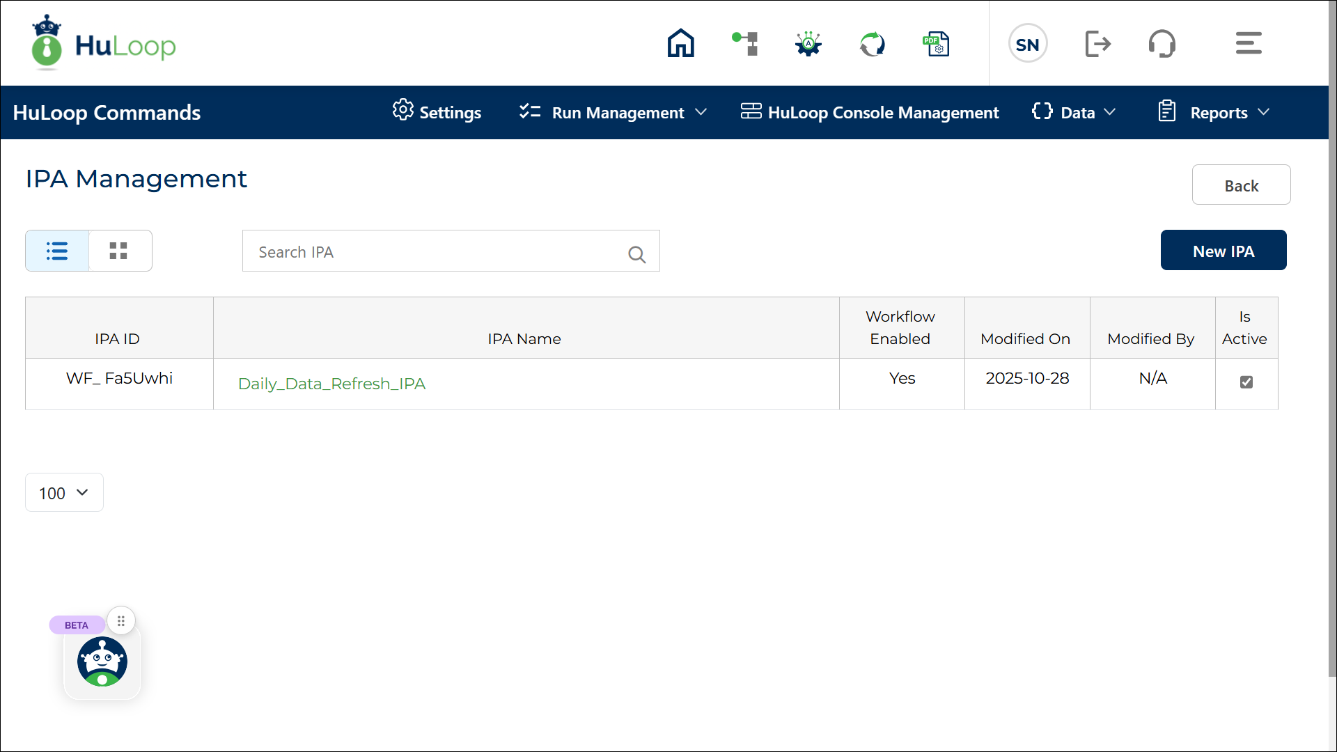 The IPA Management page gives you a consolidated view of all your Intelligent Process Automations (IPAs).