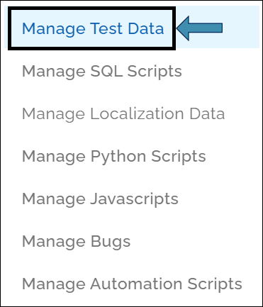 - Go to the Manage Test Data page and you will see a list of test data (if any) under the Manage Test Data section, as shown.