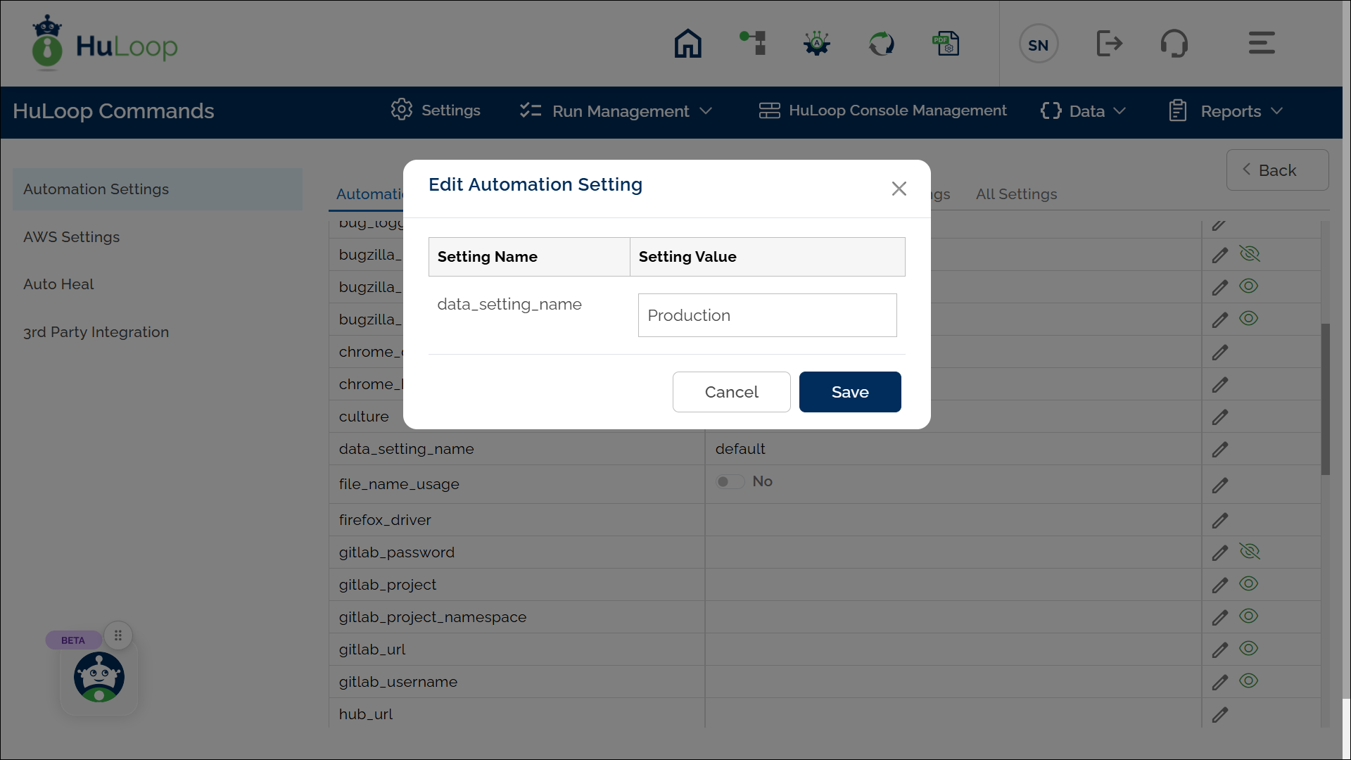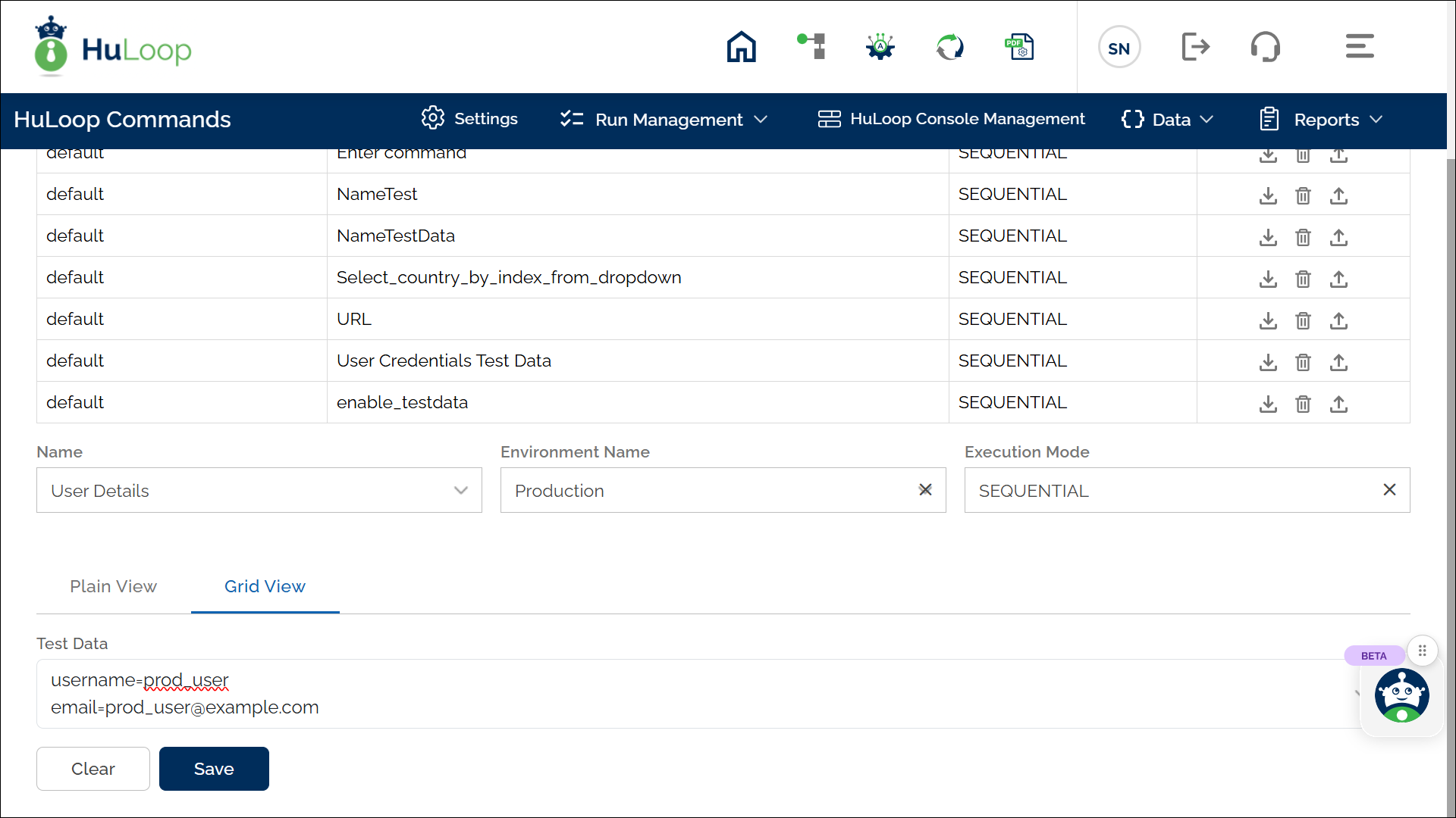 To enhance test execution across different environments (e.g., QA, Staging, Production), HuLoop allows you to create multiple test data sets with the same name but mapped to different environments. This avoids the need to manually associate and disassociate test data when switching between environments.