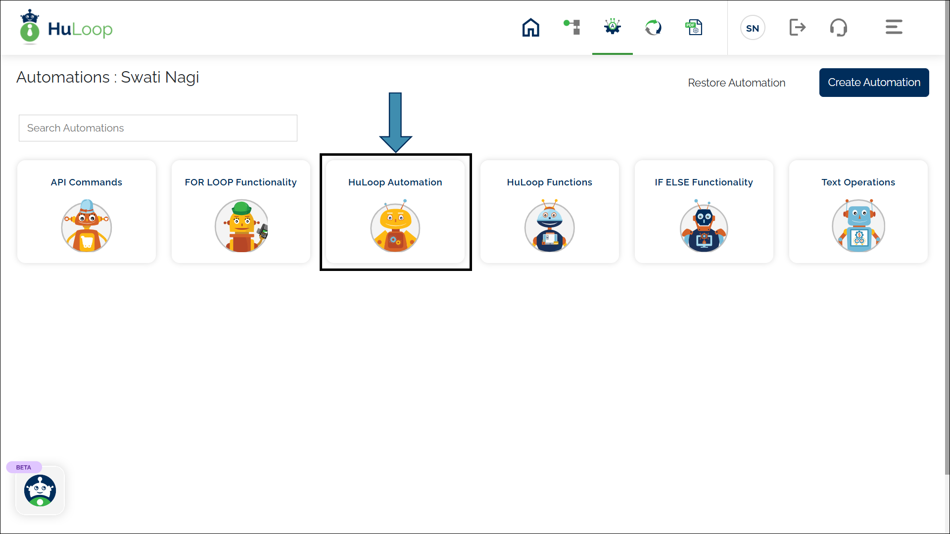 Note: HuLoop has two views: List View and Grid View. The default view is List, but you can switch to Grid View by selecting the corresponding radio button. For a clearer understanding, screenshots of both views are included in this guide.