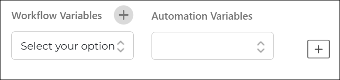 • Workflow Variable: Displays all the existing variables defined in your workflow. Select a variable you want to map with the automation variable. You can also create a new one by clicking the  icon.