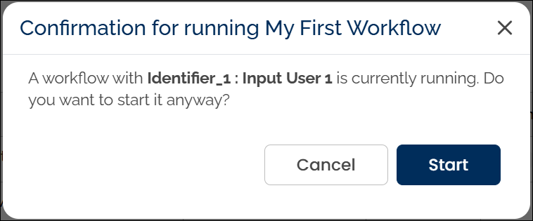 - If you proceed, a timestamp is appended to the workflow name on the My Work page to help distinguish it from previous instances.